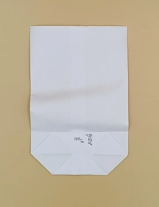 Diese Papiertüten mit Kreuzboden in Weiss sind unbedruckt und lassen sich sehr gut mit einem Etikett bekleben.